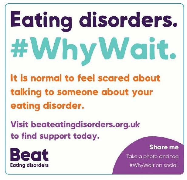 This year’s theme for Eating Disorders Awareness Week is Why wait? It highlights the fact that the sooner you seek help, the sooner recovery happens.